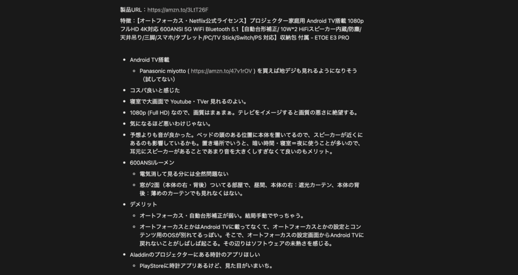 また、メモ書きだけならNotionで簡潔するので、外出先やお風呂に入りながらスマホで書いておいて、ストックしておくことも多いです。